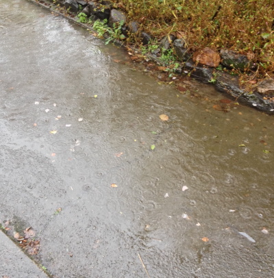 雨がやんで約6時間ほど経過して、ようやく水たまりが解消されるような状況。