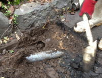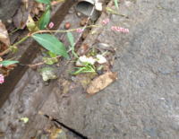 以前(約20年ほど前)に設置した排水用の側溝があるが、なかなか排水できない。