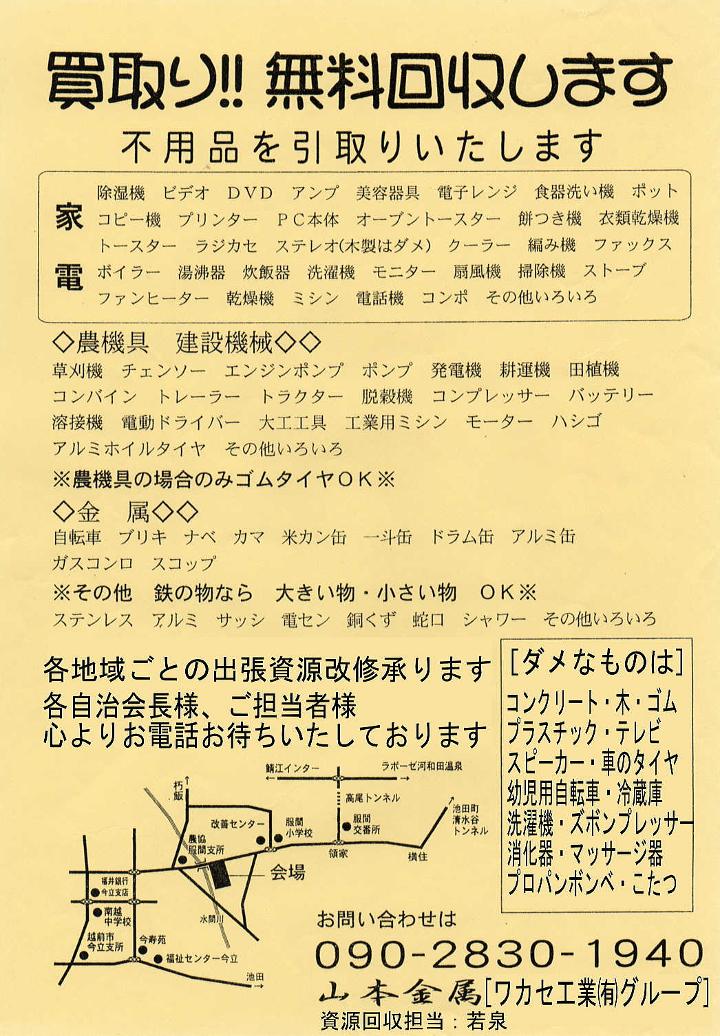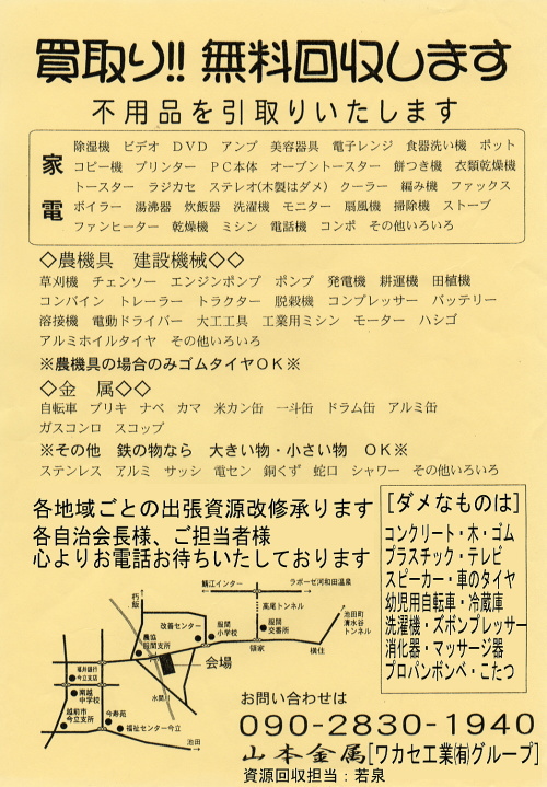 上記地域をご連絡いただければ、無料で資源回収いたします。