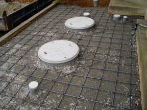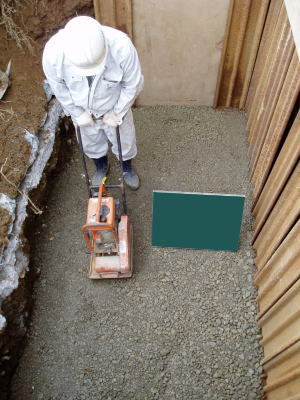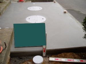 | @ コンクリートを打設し、合併浄化槽を 補強します。 |