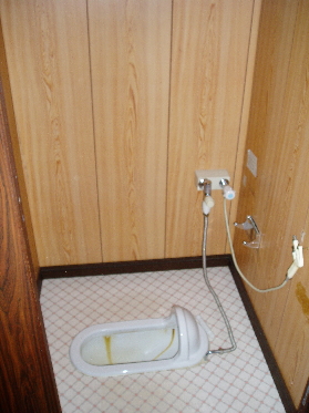 | 汲み取り式簡易水洗トイレ | TOTOウオシュレット一体型便器 |